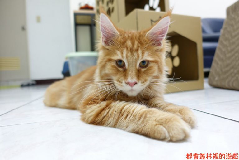 緬因貓的體型可以長到很大 目前是五個月 已經有點進不去小宇買的紙屋了