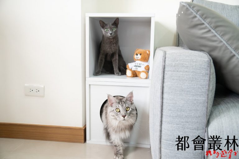 大王子在小宇組裝到最後的時候終於出現,悠哉地跳上沙發看小宇在幹嘛,因為老大個性較穩重,其實應該是懶得動(大笑。所以老大對組裝好的巧拼單格櫃(胖胖版)有興趣,小宇覺得神奇😊組裝完巧拼躲貓貓櫃(胖胖版)、巧拼單格櫃(胖胖版),小宇有一個很明顯的感受是沒有不舒服的味道,Angle Wave 安閣家的超級紙板使用無毒水性膠水,甲醛值 0 檢出之外,超級紙板材料為再生紙,將來耗損或是想換新時,可以資源回收環保再利用,安心守護毛孩們的健康也不會對環境造成負擔。
